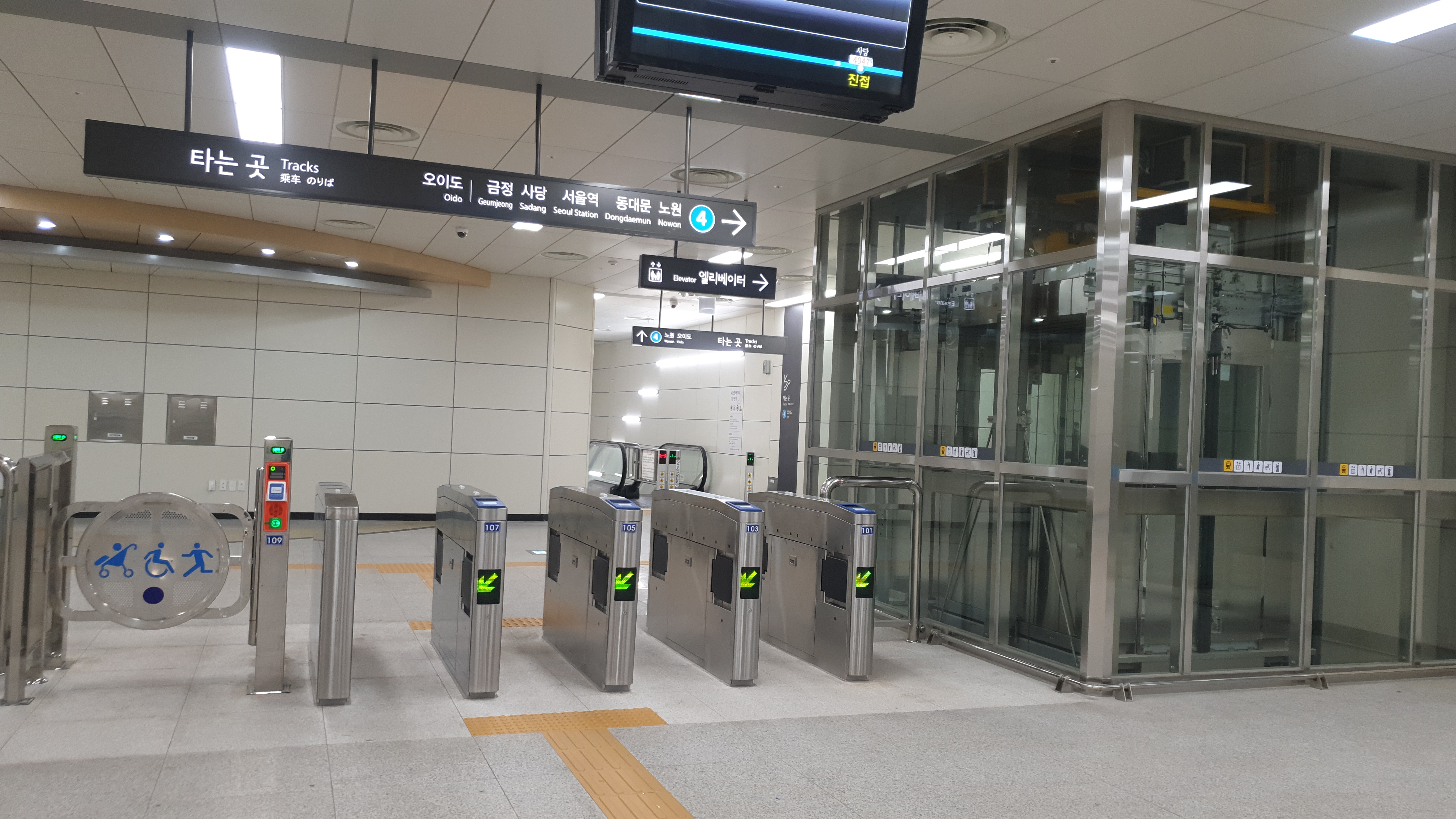 역사 출입문을 여니 바로 승차권 게이트가 보인다. 출입문에서 거리는 8m