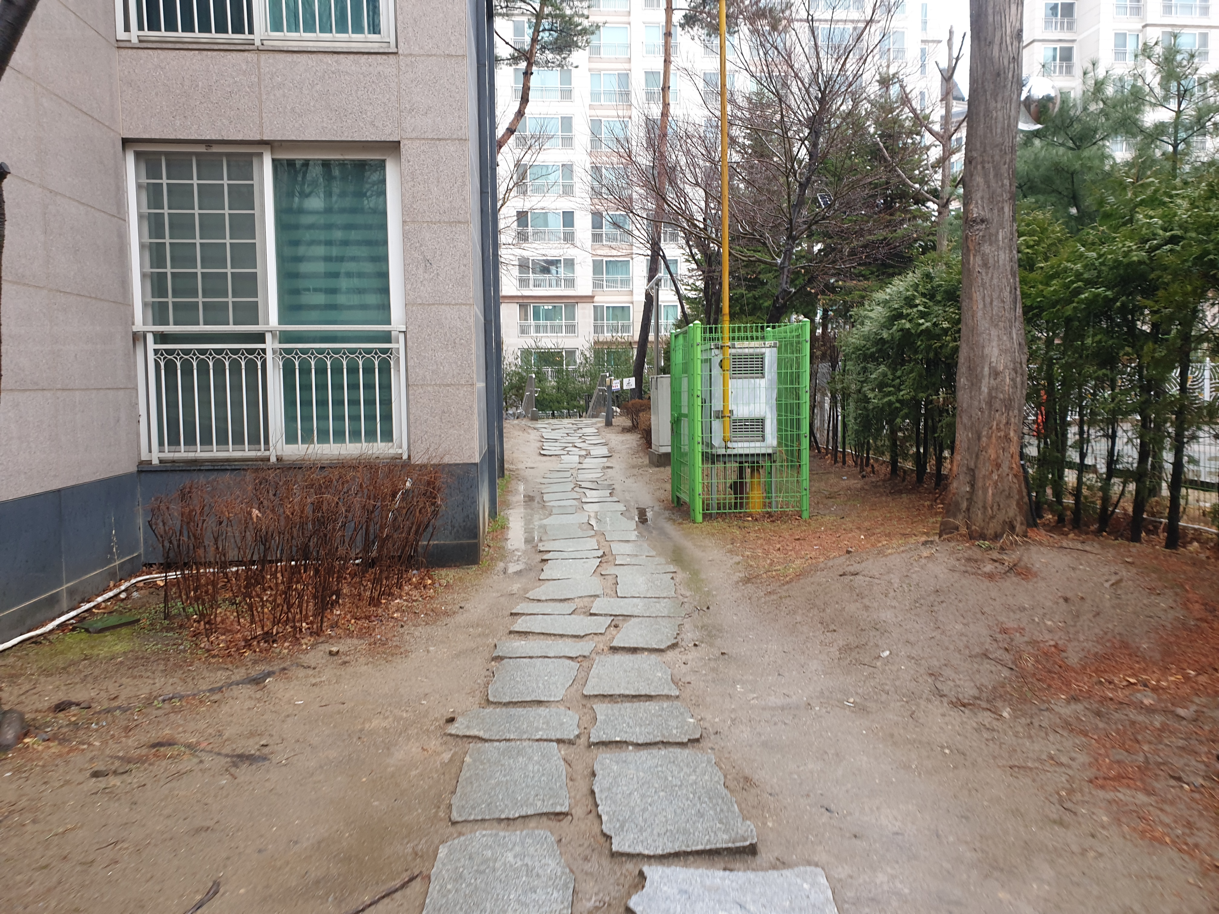 쪽문부터 4번 출구까지 거리는 약 530m, 성인 걷기 속도 5.5km/h로 5분~6분 정도 소요된다. 신호등 있는 횡단보도는 2개 정도 건너야 함으로 횡단보도 대기시간을 포함하면 6분~6분 30초 정도 예상된다. 아파트 단지 내 13,14, 15, 1,2,3,4동같이 윗동 주민들은 집 현관에서 출발하면 대략 10분 정도의 이동시간이 필요할 것으로 보인다.