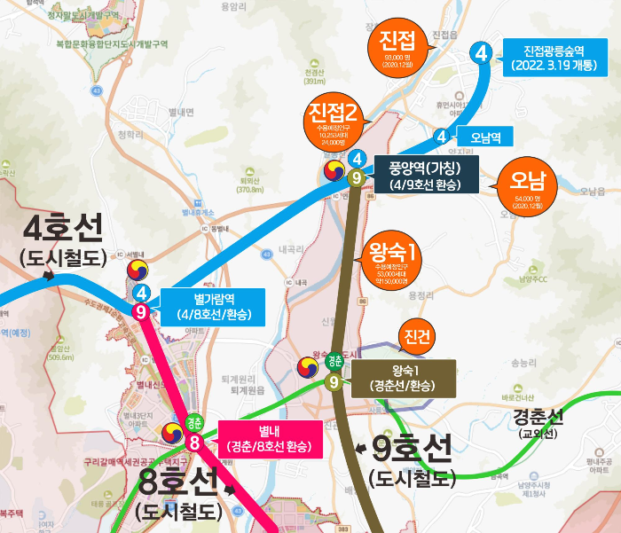 진접선개통이후 8호선연장(2024), 9호선연장(2028) 예정
